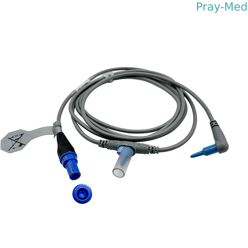 The 900MR869 Temperature/Flow Probe is a temperature and flow monitoring probe for respiratory humidification systems, primarily used in medical respiratory therapy equipment. It monitors real-time changes in gas temperature and flow rate